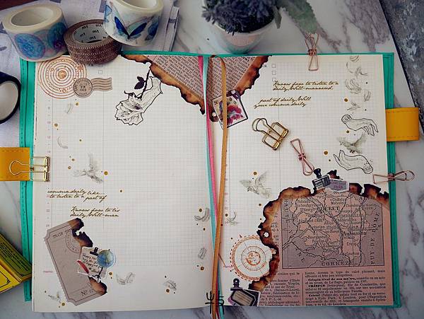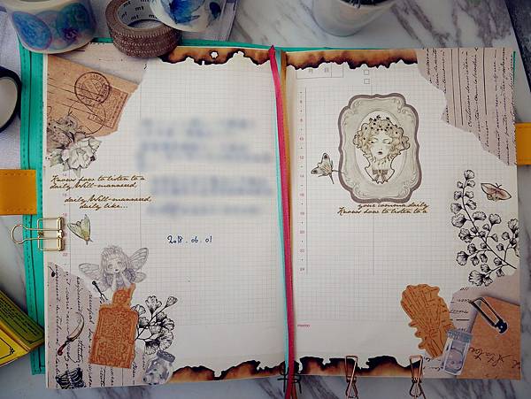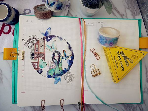 這一頁嘗試了自己一直很想玩的圓形構圖方式來拼貼。
