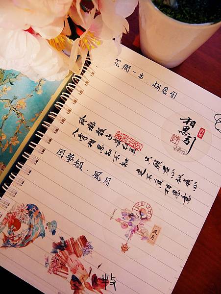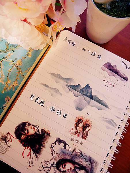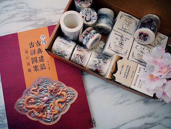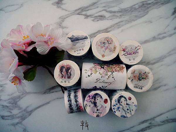 然後是這一坨花草、山水、潑墨風景和詩詞的膠帶們。
