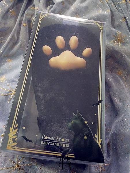 實體就是上圖和上上圖很有質感的透明硬盒印著女巫集會的形象黑貓的包裝,超可愛的貓爪刷具就在肉掌的收納包裡頭。